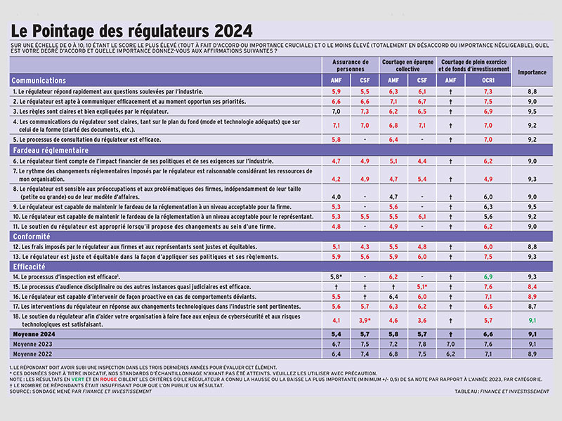 Pointage des régulateurs 2024