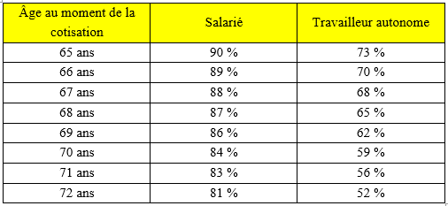 Le tableau suivant présente, pour les salariés et les travailleurs autonomes, la probabilité d’atteindre cet âge :